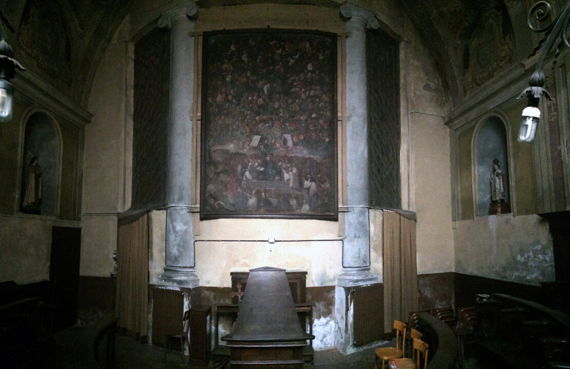 Questo dipinto, raffigurante la Genealogia di san Benedetto, è conservato oggi presso il Santuario della Beata Vergine Maria di Loreto e Santa Rita di Alessandria. La sua provenienza, però, è diversa dall’attuale sistemazione. Il dipinto in origine era conservato presso la Abbazia di San Pietro in Bergoglio, collegiata dal 1520, retta dai monaci benedettini. Il complesso abbaziale venne poi abbattuto il 17 giugno 1728 come secondo edificio in ordine cronologico, stante i programmi dell’ingegner Ignazio Bertola per la demolizione del borgo e successiva costruzione della nuova Cittadella Militare di Alessandria. La Collegiata migra, dunque, in città trovando ricovero nella chiesa di santa Maria dell’Olmo, oggi sede dell’Istituto d’Istruzione Superiore “Umberto Eco” già “Saluzzo-Plana” e prima ancora Istituto Magistrale, e il Capitolo nell’antica chiesa di san Dalmazzo. In seguito, e definitivamente, anche la Collegiata si trasferisce nella chiesa di san Dalmazzo rinnovata dai benedettini nel 1741.